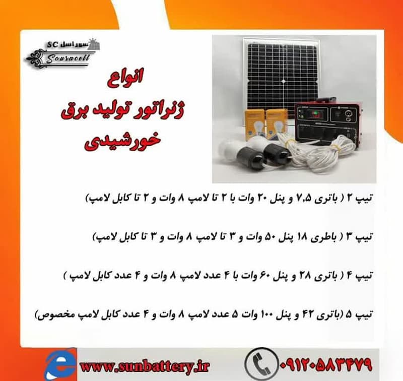 سیستم دیگری که می تواند مقدار برق بیشتری را تولید کند انواع ژنراتوهای سولار در توان 100 وات است.